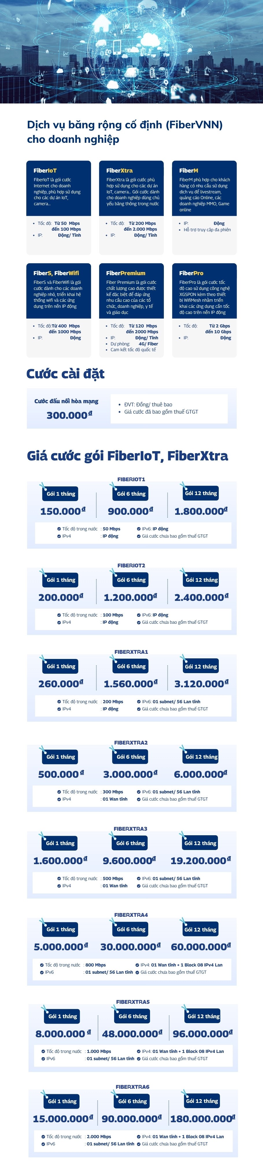 Dịch vụ Internet cáp quang của VNPT là lựa chọn hàng đầu dành cho doanh nghiệp mong muốn trải nghiệm kết nối Internet mạnh mẽ và ổn định. Với việc sử dụng công nghệ cáp quang tiên tiến, chúng tôi cam kết mang đến tốc độ truy cập Internet cao và đáng tin cậy. Điều này giúp doanh nghiệp dễ dàng tiếp cận và thực hiện mọi nhiệm vụ trực tuyến một cách nhanh chóng và mượt mà, giúp tăng hiệu suất làm việc và cải thiện trải nghiệm người dùng.
