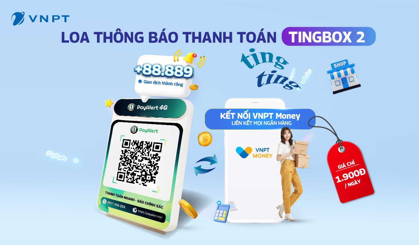 Tingbox 2 được nhiều hộ kinh doanh đánh giá cao nhờ khả năng liên kết đa ngân hàng và cả VNPT Money, mở rộng tệp khách hàng tiềm năng. Đặc biệt, sản phẩm tích hợp mini app PayAlert ngay trên Zalo, giúp người bán thao tác dễ dàng mà không cần cài đặt thêm ứng dụng. Đây là lựa chọn phù hợp với những hộ kinh doanh muốn tăng tính linh hoạt và mở rộng phạm vi giao dịch.