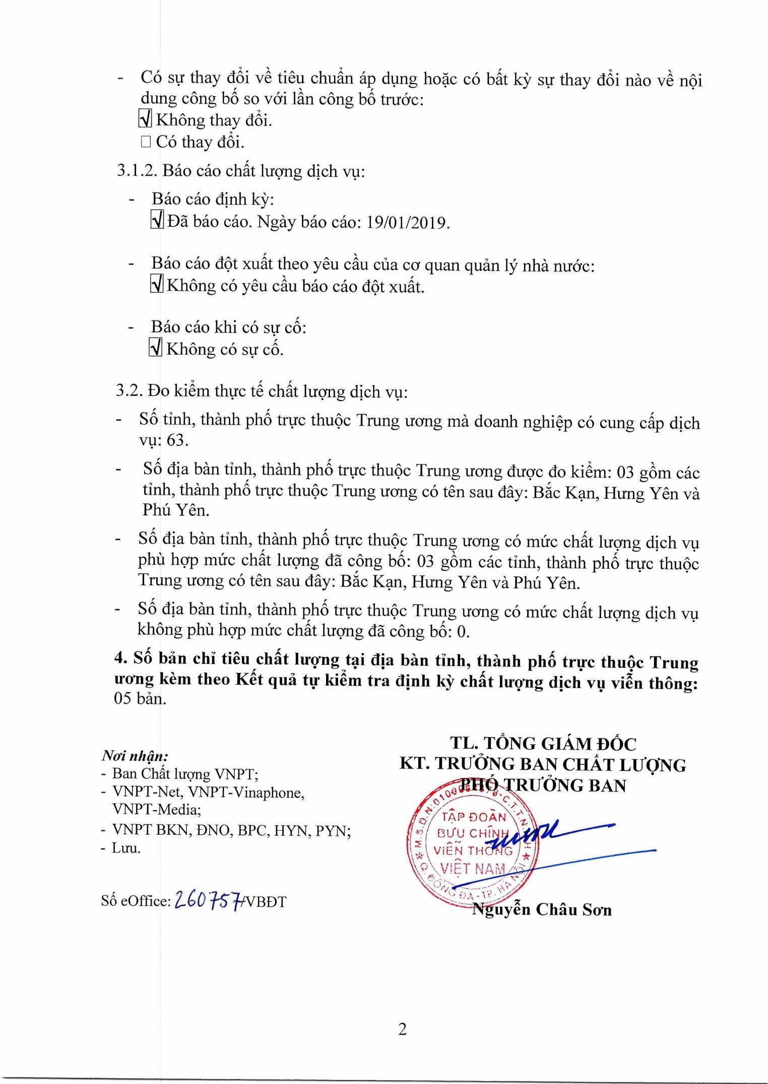 Tập đoàn Bưu chính Viễn thông Việt Nam (VNPT) công bố Kết quả tự kiểm tra định kỳ dịch vụ điện thoại trên mạng viễn thông di động mặt đất quý 1/2019.