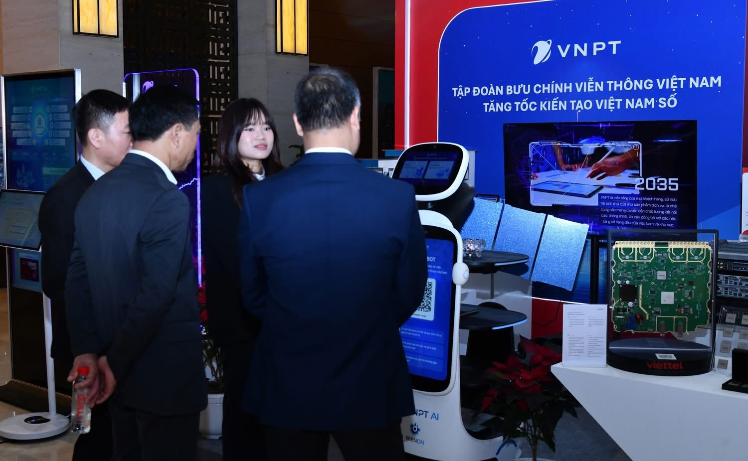 Nổi bật tại triển lãm là các mô hình hạ tầng hiện đại như hệ thống vệ tinh, tuyến cáp đất liền VSTN, hay Robot AI ứng dụng công nghệ VNPT Generative AI, hỗ trợ đón tiếp, hướng dẫn, cung cấp thông tin tại các trung tâm hành chính công; cùng nền tảng làm việc hợp nhất GoConnect tích hợp AI, giúp tăng năng suất lao động, tối ưu cộng tác và xử lý thông tin hiệu quả rất được các đại biểu quan tâm.