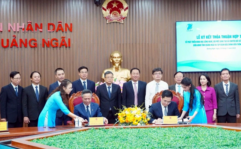 Ngày 19/11/2025, Tập đoàn VNPT và UBND tỉnh Quảng Ngãi ký kết Thỏa thuận hợp tác phát triển khoa học công nghệ, đổi mới sáng tạo và chuyển đổi số giai đoạn 2025–2030. Sự kiện đánh dấu bước tiến mới trong hành trình đưa công nghệ số trở thành động lực tăng trưởng bền vững, đồng thời khẳng định cam kết đồng hành lâu dài của VNPT với địa phương.