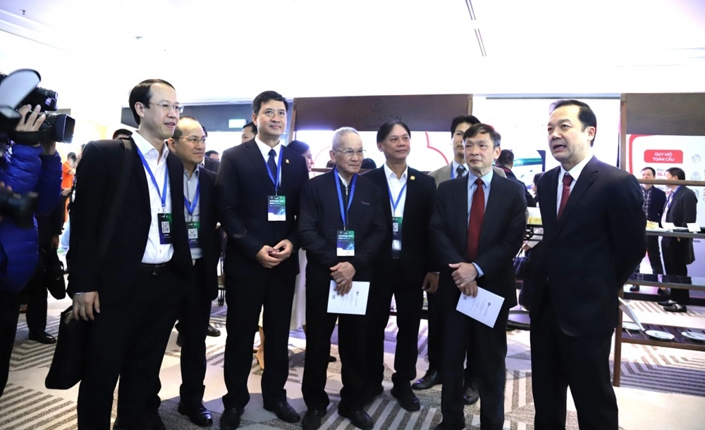 Lãnh đạo các bộ, ngành, tổ chức xã hội tham quan gian trưng bày của Tập đoàn VNPT tại Sự kiện Internet Day 2025
