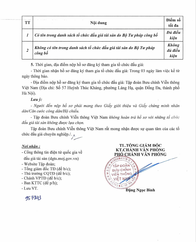 Tập đoàn Bưu chính Viễn thông Việt Nam - VNPT thông báo về việc lựa chọn tổ chức đấu giá tài sản.