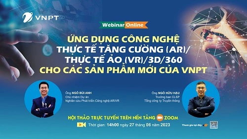 Hội thảo [WEBINAR] "Ứng dụng Công nghệ thực tế tăng cường (AR)/thực tế ảo (VR)/3D/360 cho các sản phẩm mới của VNPT" sẽ được tổ chức theo hình thức trực tuyến và mở rộng đối tượng tiếp cận đến đông đảo người dùng, yêu thích công nghệ.